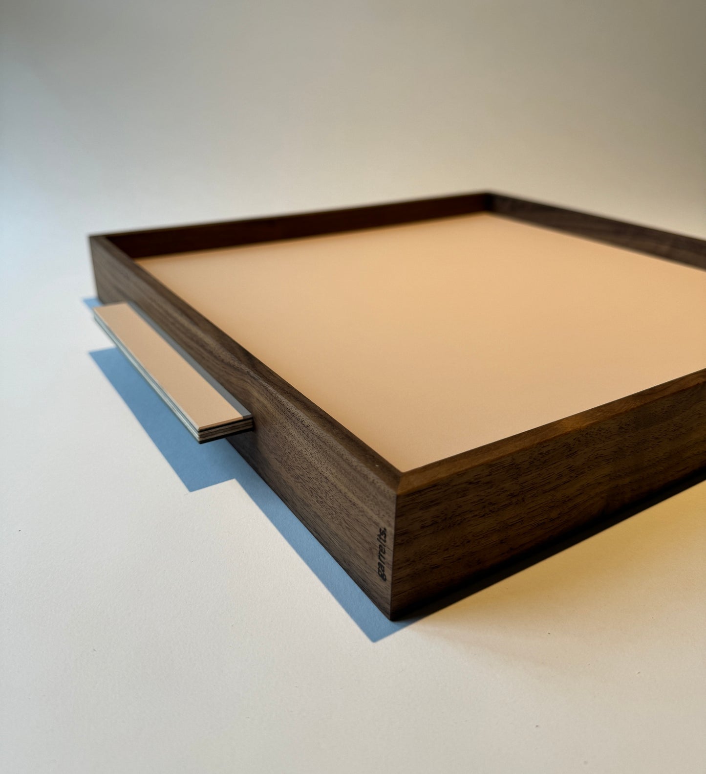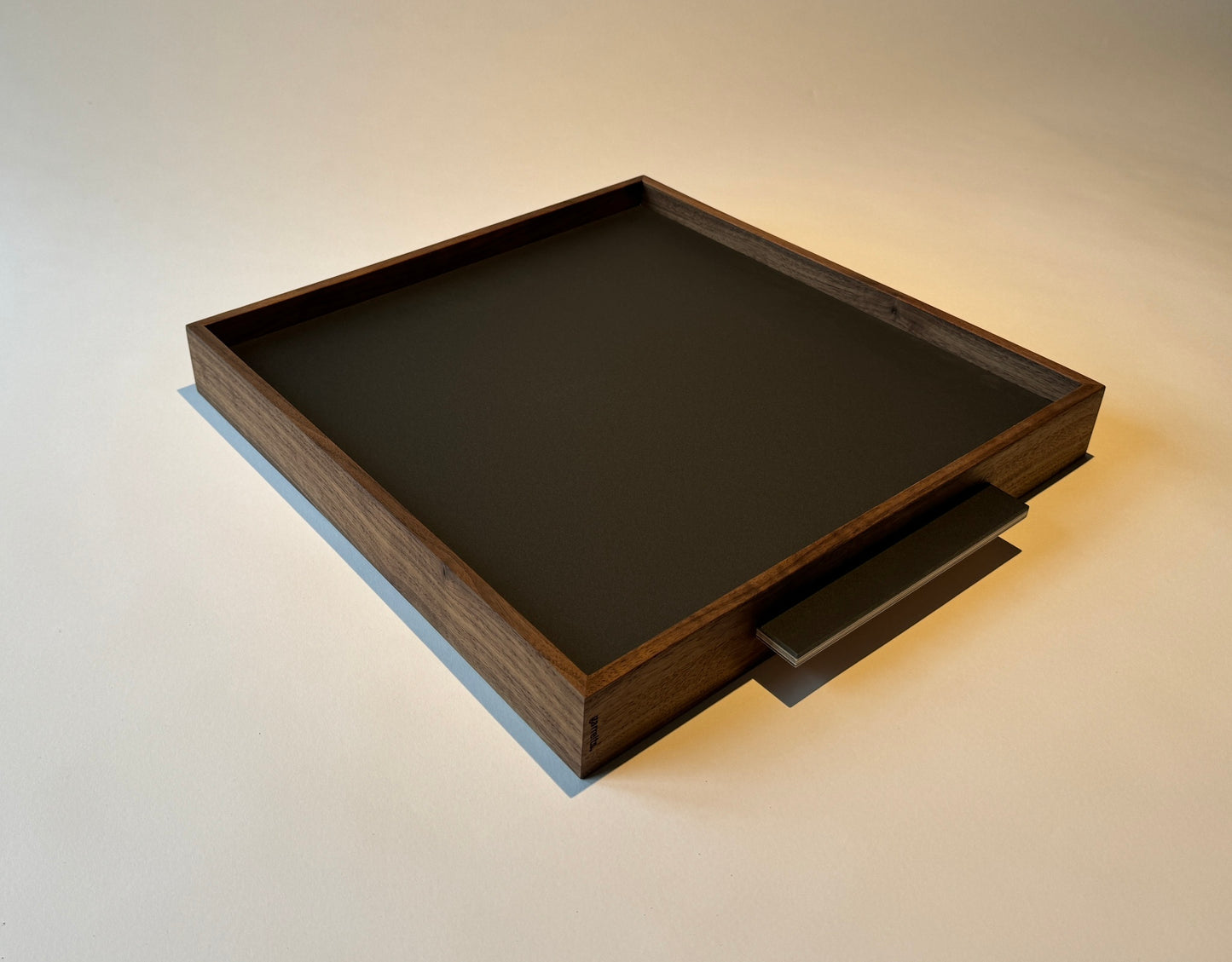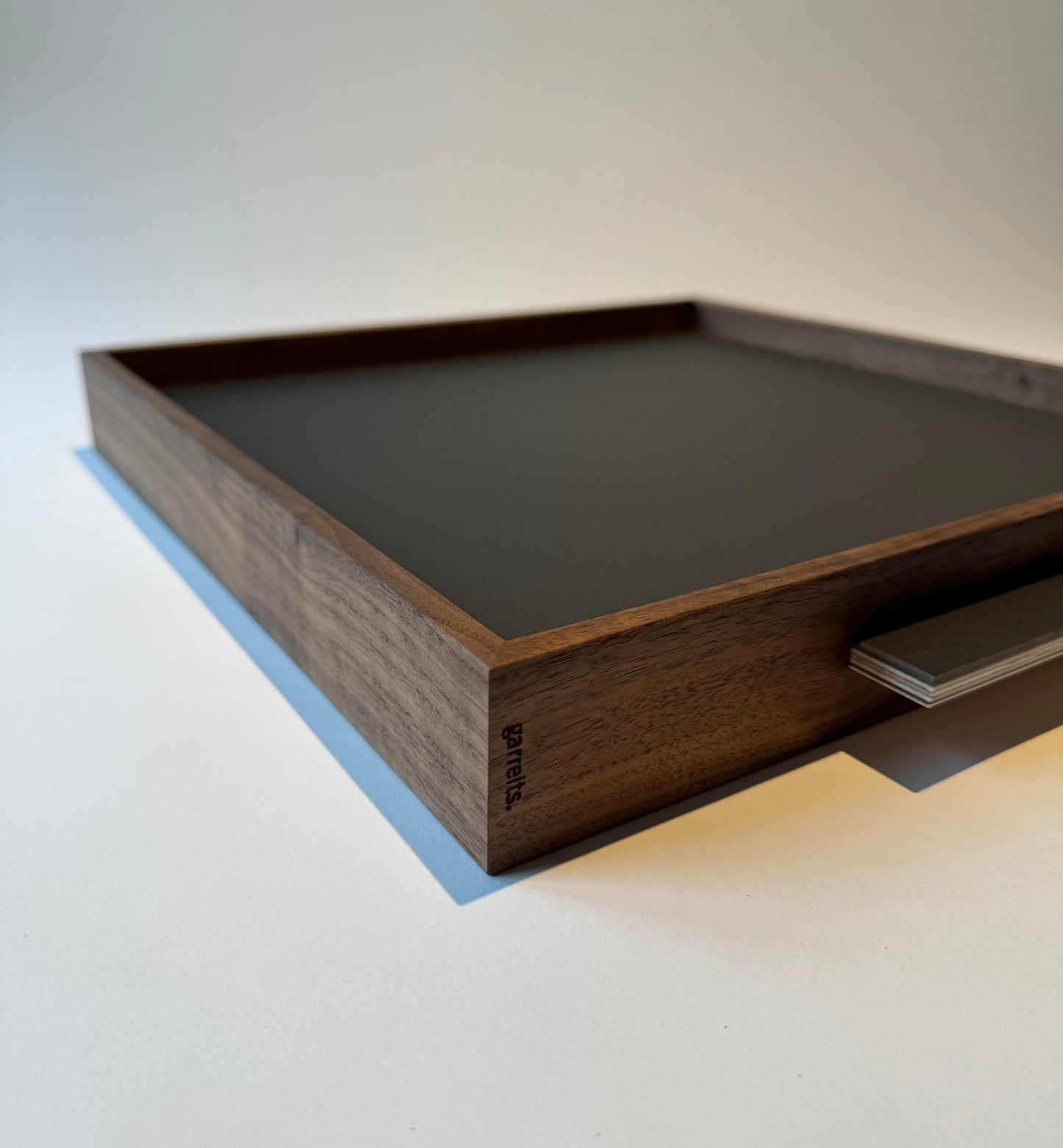 wendetablett aus amerikanischem nussbaum und linoleum in den farben powder und charcoal